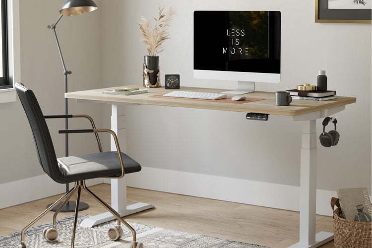 2つのモーターで駆動し、3つの脚でしっかりとサポートされています。フレームは2万回の耐久テストに合格済み。コーヒーカップを置いても安定した昇降が可能です。