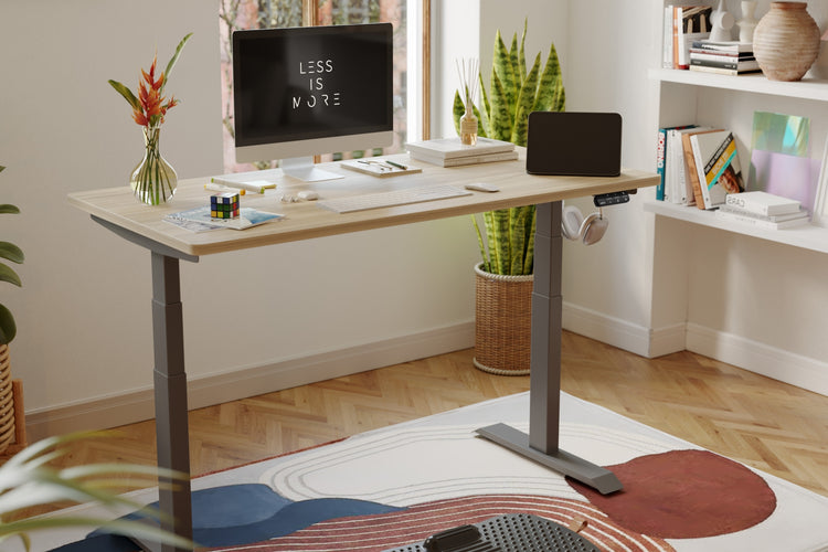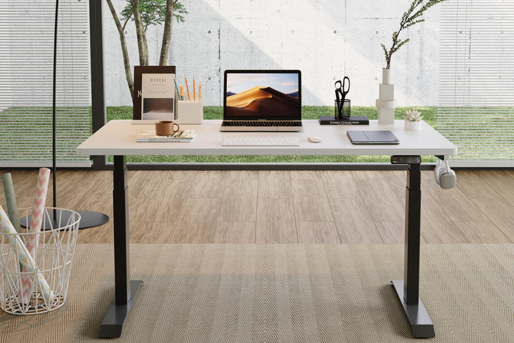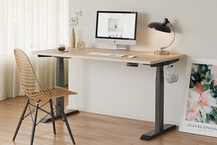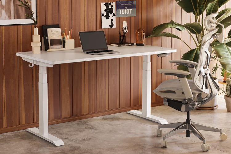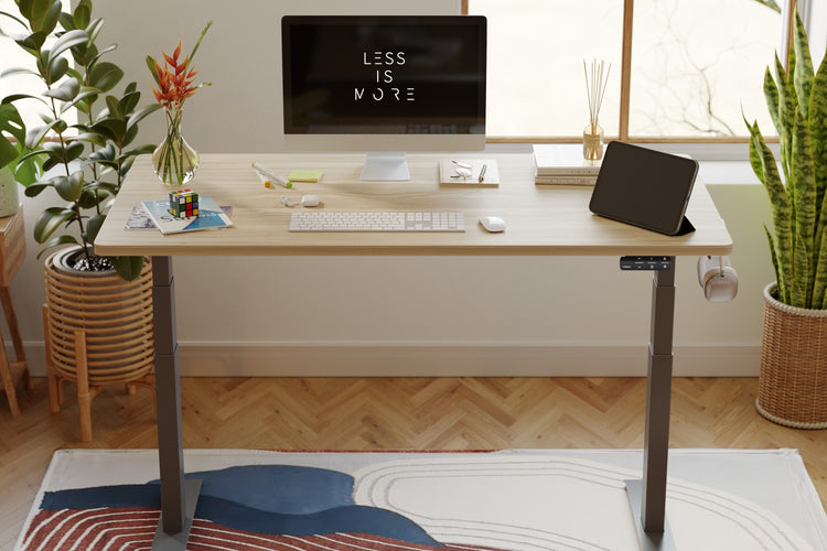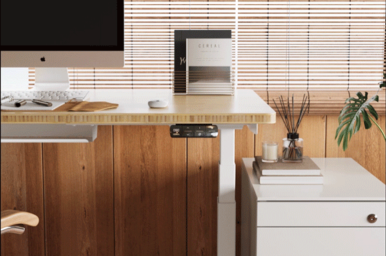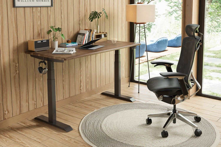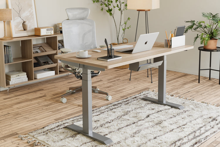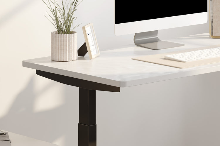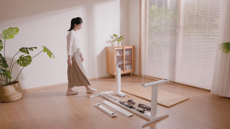 2つのモーターで駆動し、3つの脚でしっかりとサポートされています。フレームは2万回の耐久テストに合格済み。コーヒーカップを置いても安定した昇降が可能です。
